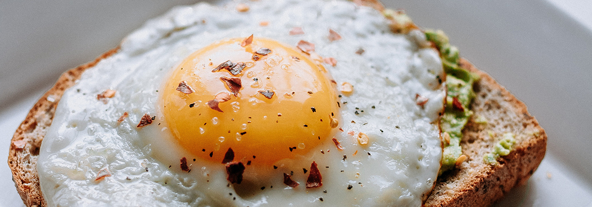 One egg served any style, one sausage or bacon, and choice of hash browns or fresh fruit sauce